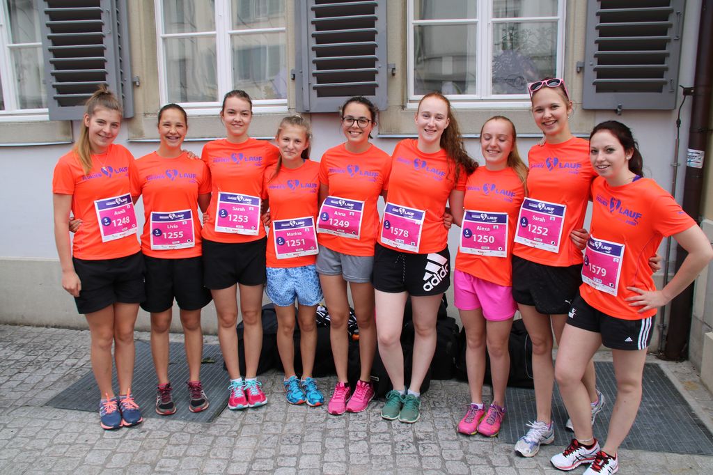 Am Sonntag dem 3. Juli um 9.00 Uhr versammelten wir uns mit unseren zwei Fans am Bahnhof in Bauma. Im Eiltempo ging es Richtung Winterthur, um die Startnummern und die bekannten Frauenlauf Shirts entgegen zu nehmen. Leider konnten verletzungs- und krankheitsbedingt nur neun der 13 gemeldeten Damen starten. Nachdem alle umgezogen und jeder seine Startnummer befestigt hatte (einige mit ein wenig mehr Hilfe), stellten sich alle bereits in die Startblöcke, um beim Aufwärmen mit zu tanzen.