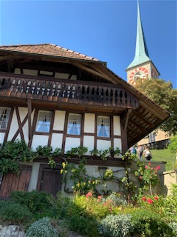 Beinahe wäre die Reise für die Schreiberin schon am Samstag, am Bahnhof vorbei gewesen, aber die mutigen Damen der Frauenriege stellten sich auf das Trittbrett des Turbo, so dass die zehnte Teilnehmerin auch noch auf den Turbo aufspringen konnte und somit wurde sie gleich zum Schreiberling bestimmt. Im Emmental angekommen, ging es in zackigem Tempo von Hasle-Rüegsau der schönen Emme nach und eingangs Burgdorf wurden wir mit einem atemberaubenden Blick auf die Burg belohnt. Auf der Galgentour mit dem charmanten Stadtführer erfuhren wir noch mehr über die Stadt. Diese Tour ist also nichts für Weicheier! Da ging es den armen Sünderweg hinunter, glücklicherweise ohne Pfärerli und Trummler und vor dem Galgenhügel schwenkten wir ab, vorbei bei Micheli Schupbach dem Naturheiler. Da wir uns nach den vielen Gruselgeschichten der Stadtführung etwas gerädert fühlten, nahmen wir den Zug und fuhren dem Henkersmahl im Hotel Hirschen in Langnau entgegen. Währenddem Langnau tanzte hielten wir auf der Terrasse vom Hirschen unsere Beine ganz schön still, beim ausgiebigen Abendessen.