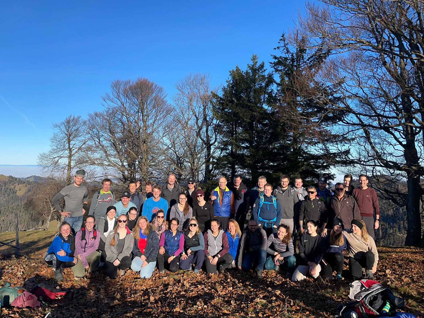 Die Turnerinnen und Turner vom Turnverein Bauma waren am Samstag, 20.11.2021 wieder einmal unterwegs. Es ging zum diesjährigen «ausgedehnten Katerbummel», der durch unsere Absage vom Turner-Chränzli etwas angepasst wurde. Als am Samstagmorgen auch noch die letzten den Weg zum Treffpunkt gefunden haben, ging es mit zwei kleinen Reisecars in Richtung Poo-Alp los. Über dem Nebelmeer angekommen, studierte man die Wanderroute, die jeder in Papierform bekommen hat, wo zwischen «lang» und «kurz» ausgesucht werden konnte. Nachdem alle ihre Schnürsenkel gebunden hatten, zog die Turnerkarawane los. Unterwegs fragten sich die Einten, welche Route nun die passende für sie wäre. Beim Betrachten der Wanderkarte stellten sie dann fest, dass man schon längst auf der langen Route unterwegs ist. Nachdem ersten Teilaufstieg ging es der Krete nach Richtung Zwischenziel. Angekommen auf dem Gipfel «Höchhand» gab es eine kurze Pause, manche zauberten aus ihren Rücksäcken einen feinen Zwipf. Dieser ging über Aufschnitt mit Brot bis hin zu Kaffee-Luz mit Wienerli. Nach dieser Stärkung machten wir uns weiter zum Mittagstreffpunkt in die Brustenegg-Hütte im Atzmännig. Eine kleine Gruppe beschloss, einen Umweg über die «Chrüzegg» zu machen. Der Abstieg ging zuerst durch einen mit Laub übersäten Waldweg hinunter auf die Chammstrasse Richtung Atzmännig. In der Hütte angekommen und nach der obligaten Zertifikatskontrolle konnten wir unseren ersten Durst stillen. Das Mittagessen liess auch nicht lange auf sich warten und nach einem feinen Salat und einer grosszügigen Portion «Ghackets & Hörnli» hiess es für die Meisten ab in den Seilpark. Ein Paar von uns gingen noch mit dem Sessellift hinauf ins Bergrestaurant Atzmännig Hartz und eine kleine Gruppe blieb in der Hütte. Nach einem gelungenen und aktiven Tag ging es mit dem Car wieder zurück nach Bauma, wo wir in der Schwendi den Ausklang genossen haben.