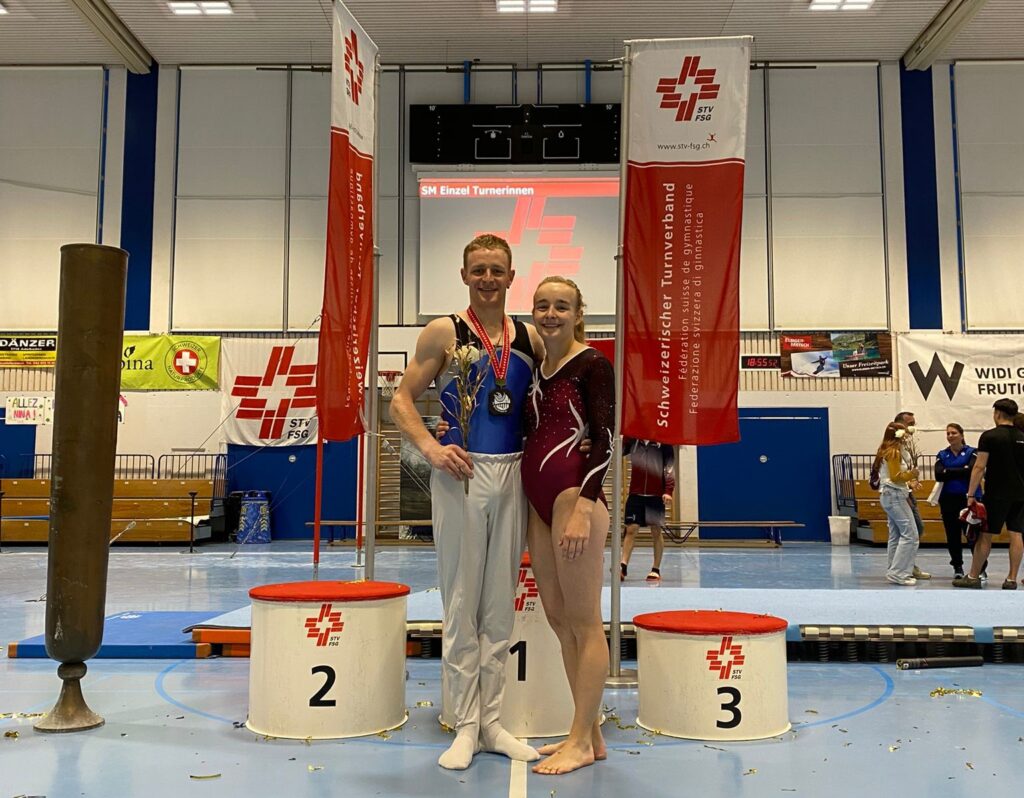 Am Sonntag, 5. November stand für die Geschwister Wüest ein weiterer Saisonhöhepunkt an:  In Thun fanden die Schweizer Meisterschaften Turnerinnen Einzel sowie die Gerätefinals statt. Den Anfang machte Jeanine Buchmann-Wüest, welche in der Kategorie Damen (Ü22) startete. Sie zeigte einen guten Wettkampf mit fehlerfreien Übungen. Für die Gerätefinals am Nachmittag konnten sich die Turnerinnen und Turner der höchsten Kategorie 7 durch ihre Leistungen an den Einzel-Schweizermeisterschaften qualifizieren. Philipp gelang die Qualifikation an den Schaukelringen sowie am Barren. Nachdem ihm vor der Schaukelring-Übung die Nervosität anzumerken war, konnte er eine gute Performance abrufen. Somit war er auch gewappnet fürs Barren-Finale, wo ihm eine fehlerfreie Übung gelang – doch wie weit nach vorne würden ihn diese Übungen im hochklassigen Teilnehmerfeld bringen? Die Rangverkündigung brachte die Gewissheit: Jeanine konnte mit dem 11. Platz ihre beste Rangierung an einer Schweizer Meisterschaft Einzel feiern. Nachdem Philipp vom Ergebnis an den Schaukelringen (7. Rang) enttäuscht war, freute er sich umso mehr über seine Platzierung am Barren: Als 3. schaffte er den Sprung aufs Podest! Ein historisches Ergebnis, denn noch nie hat ein Baumer Turner eine Gerätefinal-Medaille entgegennehmen dürfen. Gemeinsam mit dem Fangrüppli wurden die Ergebnisse auf der Heimreise noch gebührend gefeiert.