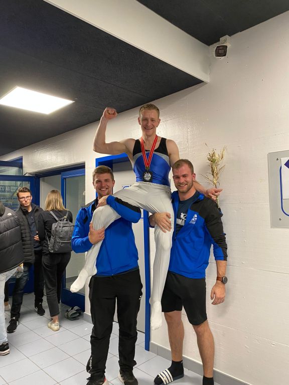 Am Sonntag, 5. November stand für die Geschwister Wüest ein weiterer Saisonhöhepunkt an:  In Thun fanden die Schweizer Meisterschaften Turnerinnen Einzel sowie die Gerätefinals statt. Den Anfang machte Jeanine Buchmann-Wüest, welche in der Kategorie Damen (Ü22) startete. Sie zeigte einen guten Wettkampf mit fehlerfreien Übungen. Für die Gerätefinals am Nachmittag konnten sich die Turnerinnen und Turner der höchsten Kategorie 7 durch ihre Leistungen an den Einzel-Schweizermeisterschaften qualifizieren. Philipp gelang die Qualifikation an den Schaukelringen sowie am Barren. Nachdem ihm vor der Schaukelring-Übung die Nervosität anzumerken war, konnte er eine gute Performance abrufen. Somit war er auch gewappnet fürs Barren-Finale, wo ihm eine fehlerfreie Übung gelang – doch wie weit nach vorne würden ihn diese Übungen im hochklassigen Teilnehmerfeld bringen? Die Rangverkündigung brachte die Gewissheit: Jeanine konnte mit dem 11. Platz ihre beste Rangierung an einer Schweizer Meisterschaft Einzel feiern. Nachdem Philipp vom Ergebnis an den Schaukelringen (7. Rang) enttäuscht war, freute er sich umso mehr über seine Platzierung am Barren: Als 3. schaffte er den Sprung aufs Podest! Ein historisches Ergebnis, denn noch nie hat ein Baumer Turner eine Gerätefinal-Medaille entgegennehmen dürfen. Gemeinsam mit dem Fangrüppli wurden die Ergebnisse auf der Heimreise noch gebührend gefeiert.