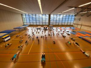 Nach dem Geräteaufbau in den Turnhallen startete das Training mit einem gemeinsamen Aufwärmen. Anschliessend verteilten sich die verschiedenen Gruppen, eingeteilt nach Kategorien, zum jeweiligen Startgerät. Nach zwei Geräten verpflegten wir uns am Mittag im Restaurant. Am Nachmittag wurde fleissig weitertrainiert. Um den Muskelkater am Sonntag möglichst in Grenzen zu halten, gab es am Samstagabend vor dem Abendessen noch ein gemeinsames Ausdehnen. Den Abend liessen wir im gemütlichen Rahmen ausklingen.