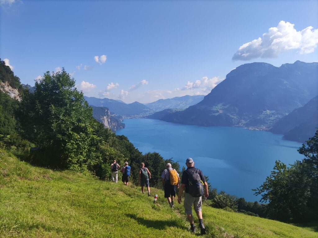 Kürzlich fanden sich 20 Männerriegler für die diesjährige Reise ein. Ein erstes Ziel bildete eine Führung durch den HB Zürich. Fast unheimlich erschien es manchem, dass die Sihl 16 m über den neuen Perrons des Durchgangsbahnhofs in einer Art Badewanne ruhig über den Köpfen der Fahrtgäste dahinfliesst. Im historisch einladenden Restaurant Federal verpflegte sich die Gruppe bestens, bevor es weiter mit Zug und Bus nach Isenthal beim Urnersee ging und hinauf nach St. Jakob. Während die Luftseilbahn die einen nun bequem in die Höhe auf die Alp Oberegg Gitschenen brachte, zog es die Mehrheit der Gruppe vor, zu Fuss ihre Fitness beim Aufstieg zu testen. Die Alp auf 1546 m ü. M. wird erstaunlicherweise von vier Familien ganzjährig bewohnt. Die Männerriegler hingegen begnügten sich, den unterhaltsamen Abend mit Speis und Trank zu geniessen. Der Sonntag forderte die Gruppe zu neuen Leistungen heraus. Prächtig schien die Sonne zum Urirotstock. Nach einem zwar etwas verspäteten, aber feinen Frühstück zogen die einen zu Fuss abwärts, die andern wählten die Luftseilbahn für den steilen Abstieg nach St. Jakob. Auf dem Höhenweg mit fantastischer Sicht auf den Urnersee führte die Tour weiter nach Bauen. Gesunde Knie und genügend Fitness forderte der abschüssige Weg. Verschwitzt von der Anstrengung erholten sich einige Kameraden bei einem Bad im kühlen Wasser des Urnersees, bevor es per Schiff nach Luzern und mit der Eisenbahn zurück nach Bauma ging. Danke Marco für die interessante Tour!