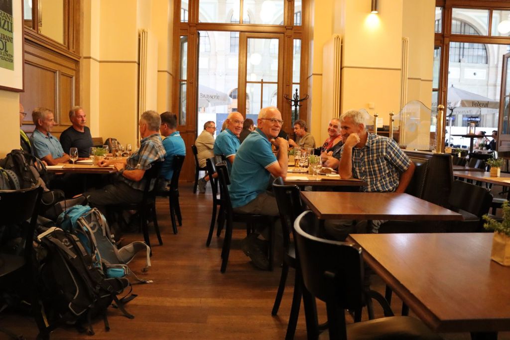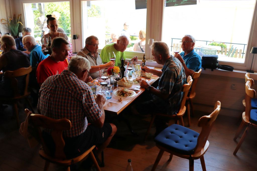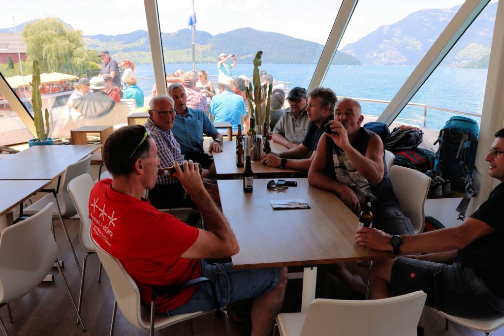 Kürzlich fanden sich 20 Männerriegler für die diesjährige Reise ein. Ein erstes Ziel bildete eine Führung durch den HB Zürich. Fast unheimlich erschien es manchem, dass die Sihl 16 m über den neuen Perrons des Durchgangsbahnhofs in einer Art Badewanne ruhig über den Köpfen der Fahrtgäste dahinfliesst. Im historisch einladenden Restaurant Federal verpflegte sich die Gruppe bestens, bevor es weiter mit Zug und Bus nach Isenthal beim Urnersee ging und hinauf nach St. Jakob. Während die Luftseilbahn die einen nun bequem in die Höhe auf die Alp Oberegg Gitschenen brachte, zog es die Mehrheit der Gruppe vor, zu Fuss ihre Fitness beim Aufstieg zu testen. Die Alp auf 1546 m ü. M. wird erstaunlicherweise von vier Familien ganzjährig bewohnt. Die Männerriegler hingegen begnügten sich, den unterhaltsamen Abend mit Speis und Trank zu geniessen. Der Sonntag forderte die Gruppe zu neuen Leistungen heraus. Prächtig schien die Sonne zum Urirotstock. Nach einem zwar etwas verspäteten, aber feinen Frühstück zogen die einen zu Fuss abwärts, die andern wählten die Luftseilbahn für den steilen Abstieg nach St. Jakob. Auf dem Höhenweg mit fantastischer Sicht auf den Urnersee führte die Tour weiter nach Bauen. Gesunde Knie und genügend Fitness forderte der abschüssige Weg. Verschwitzt von der Anstrengung erholten sich einige Kameraden bei einem Bad im kühlen Wasser des Urnersees, bevor es per Schiff nach Luzern und mit der Eisenbahn zurück nach Bauma ging. Danke Marco für die interessante Tour!