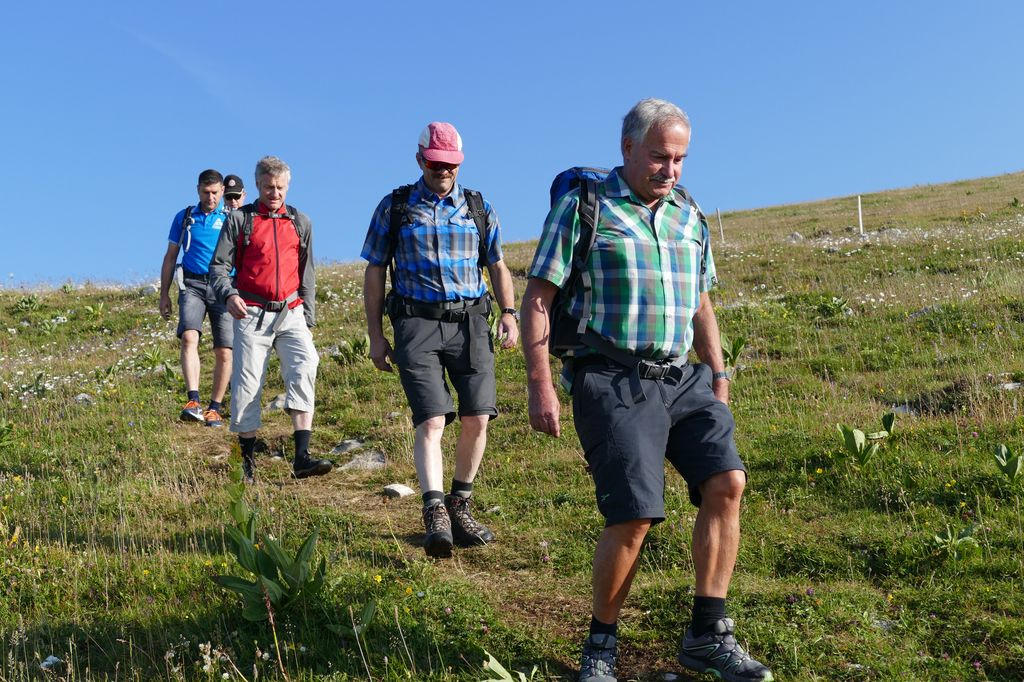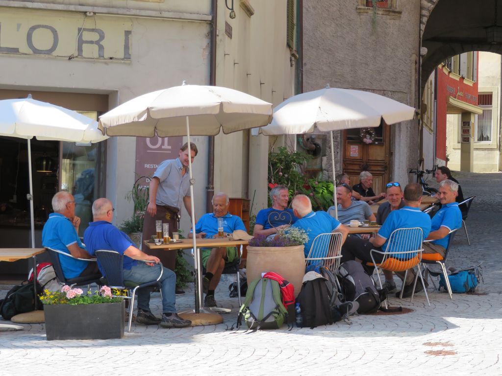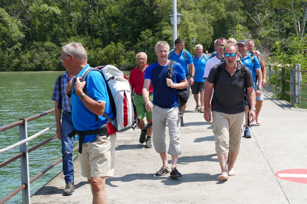 Der erste Reisetag ging ohne allzu grosse turnerische Leistungen, dafür mit einem köstlichen, reichhaltigen Nachtessen und mit Spiel und Spass zu Ende. Am folgenden Tag stiegen wir in verschiedenen Gruppen über den steinigen Weg steil abwärts nach Nods. Zwei Kameraden stürzten, kamen jedoch mit geringen Verletzungen glimpflich davon. Weiter wanderten wir nach Préles. Den letzten Teil hinunter zum Bielersee vertrauten wir uns der Standseilbahn an. Vom Weinort Ligerz führte uns das Schiff zur Petersinsel, wo ein leckeres Mittagessen im ehemaligen Klostergarten auf uns wartete. Im herrlichsten Sonnenschein genossen wir die Fahrt nach Biel an Bord des Schiffes. Müde, aber zufrieden trafen wir abends in Bauma ein.