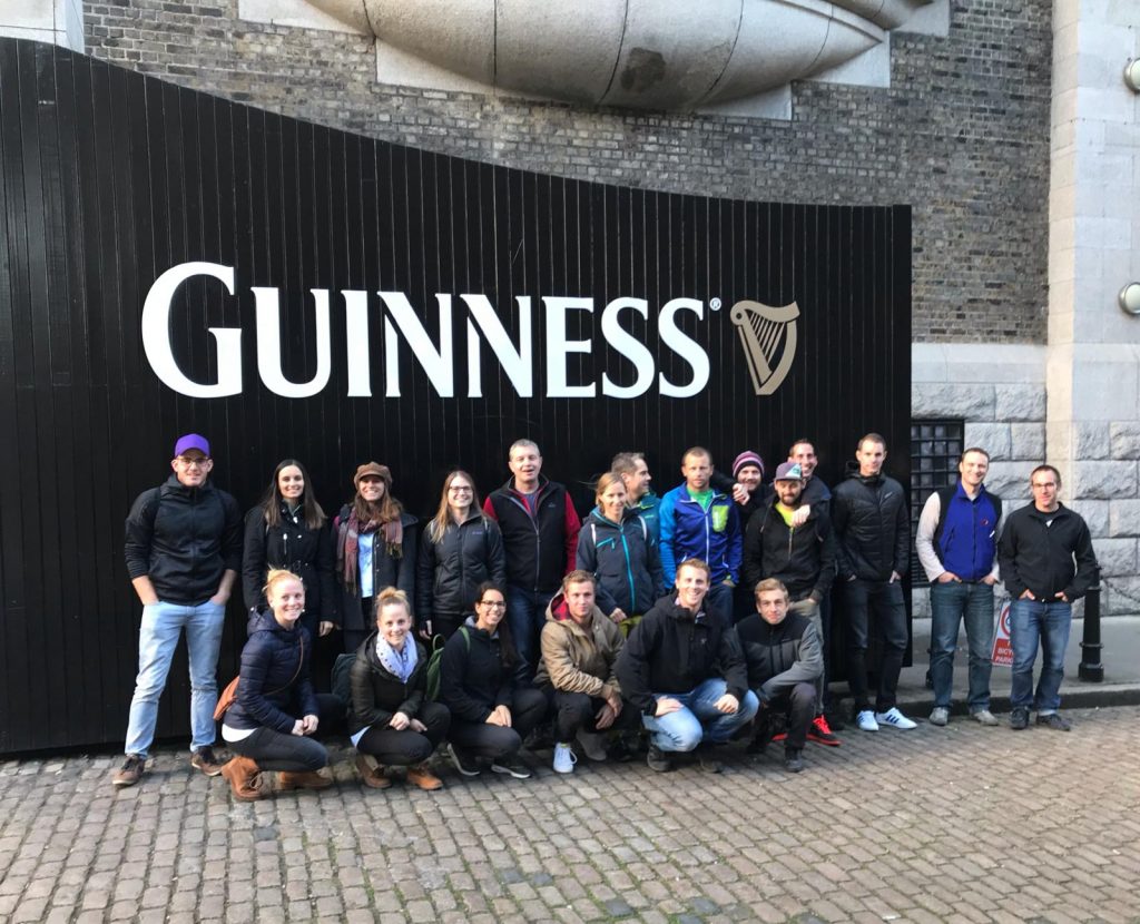 Am Freitagmorgen, 26.10.2018 um 9:00 Uhr trafen sich die einheimischen Turner/innen am Bahnhof Bauma. Von dort reisten wir mittels ÖV zum Flughafen Zürich-Kloten. Am Treffpunkt, der ‚bye bye‘-Bar, war unsere 20er Gruppe dann schlussendlich komplett. Nach einem etwas aufwändigerem Check-in marschierten die Ersten via Sicherheitskontrolle Richtung Gate E. Da leider beim Einchecken mehr Zeit als geplant verging, legten die Letzten der Gruppe noch einen kurzen Schluss-Spurt hin, um ja den Flieger nicht zu verpassen. In Dublin angekommen und im Hostel eingecheckt, war das “Guinness Storehouse” unser nächstes Ziel. Bei dieser Führung wurden wir bestens darüber informiert, wie ein “Guinness” hergestellt wird und waren somit gut vorbereitet für die anschliessenden Pub-Besuche. Kutschenfahrt – Pub – Restaurant – Pub – Pub – Pub – Hostel. Nach der ersten mehr oder weniger kurzen Nacht versammelten wir uns nach einem irischen Frühstück vor dem Hostel. Jetzt stand Sport auf dem Tagesprogramm. Nach kurzer Einführung in drei verschiedene typisch irische Spiele hiess es dann bereits, ab nach draussen auf den Rasen. Hurling heisst das bekannteste Spiel in Irland. Würde es diesen Mannschaftssport in der Schweiz geben, müsste der Turnverein Bauma nun wohl auf einige Mitglieder verzichten. Danach erhielten wir einen Einblick mit anschliessender Degustation in einer Whiskybrennerei.