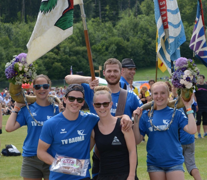 Voller Motivation fanden wir uns am Samstagmorgen zusammen und starteten kurz darauf schon mit dem 3-teiligen Wettkampf. Die Leichtathleten holten sich im Hochsprung die hohe Note 9.59 währenddessen die Turner ihre Gerätekombination zum Besten gaben. Sie wurden mit 9.69 belohnt! Kurz nach 10 Uhr wurde die Gymnastikvorführung angekündigt und souverän von den 13 Frauen vorgeführt und mit 8.55 bewertet. Wieder gleichzeitig war die Pendelstafette an der Reihe und die LA-er spurteten so schnell, dass sie eine Note von 9.94 erreichten! Einfach genial! Schlag auf Schlag machten sich die Männer bereit für ihr Barrenprogramm und die Leichtathleten für den Weitsprung. Mit ihren Sprüngen in den Sand verdienten sie sich eine 8.99 und die Turner eine 9.47. Zum Abschluss kamen wir in der Arena zusammen, wo die Schaukelringturner im 1-teiligen Wettkampf starteten. Nach knapp 4 Minuten war die Show vorbei. Pünktlich zum Abschluss kam die Sonne zum Vorschein und alle versammelten sich vor der Arena zum gemeinsamen Anstossen! Anschliessend strömten alle in verschiedene Richtungen, sei es, um sich in der Töss zu erfrischen oder eine Helferschicht anzutreten. Am Abend traf man sich wieder in der Bar, wo man auch vor dem Regen sicher war. Am Sonntag fanden die Schlussfeier und die Rangverkündigung bei strahlendem Sonnenschein statt. Beim 3-teiligen Wettkampf erreichten wir den 6. Platz in der 2. Stärkeklasse und mit den Schaukelringen gewannen wir mit einer Note von 9.60 den Wettkampf! Im Anschluss sassen wir gemütlich beisammen und liessen das gelungene Fest ausklingen!